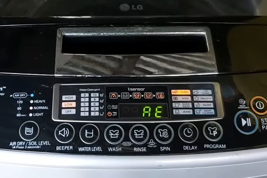 Lỗi AE trên máy giặt LG là viết tắt của “Auto Error”, đây là trường hợp xảy ra khi máy giặt đang hoạt động nhưng mất nguồn điện đột ngột. Khi này, máy sẽ báo lỗi AE trên màn hình hiển thị, thông báo cho người dùng dấu hiệu lỗi để tìm ra nguyên nhân và cách khắc phục nhanh chóng.