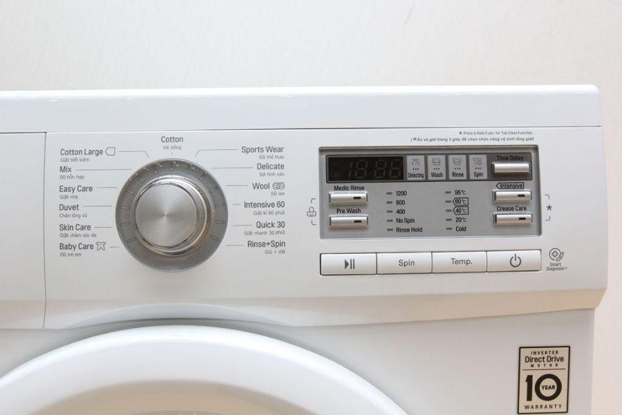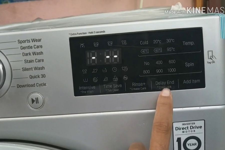 Nếu máy giặt LG cửa trước không có biểu tượng Child lock, bạn có thể sử dụng tổ hợp phím “Wash + Rinse”. Hãy bấm và giữ liên tục trong 5 giây, cho đến khi nghe máy giặt kêu tít tít. Lúc này, chức năng “Child Lock” sẽ được kích hoạt và bạn có thể sử dụng máy giặt LG bình thường.