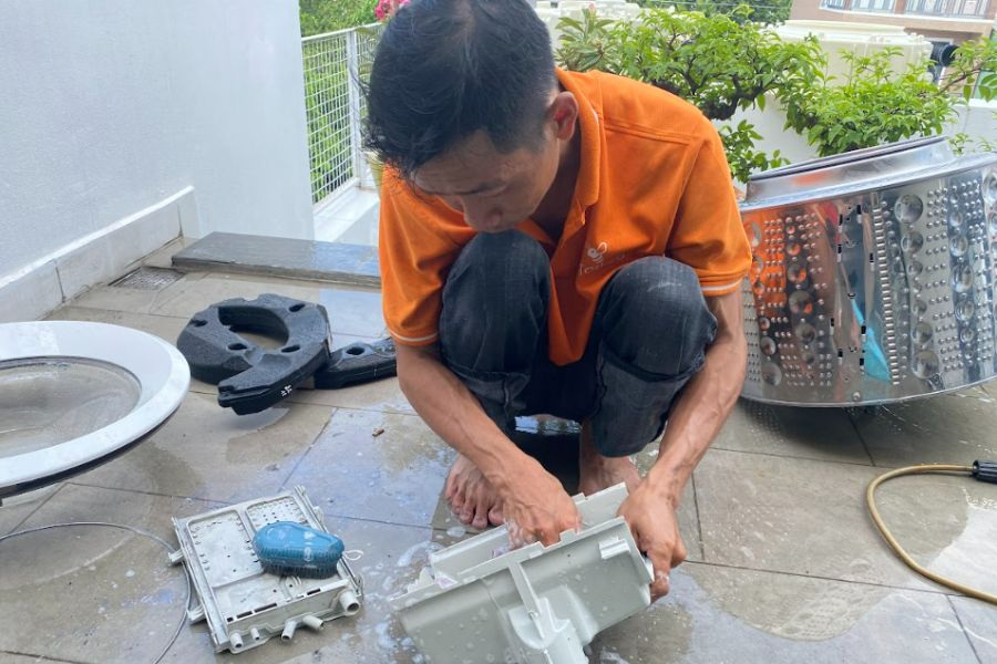 - Bảo dưỡng vệ sinh máy giặt định kỳ từ 3 – 6 tháng/lần để phát hiện và khắc phục kịp thời tình trạng hỏng hóc của các bộ phận bên trong máy như bộ quang treo, công tắc chống rung,…