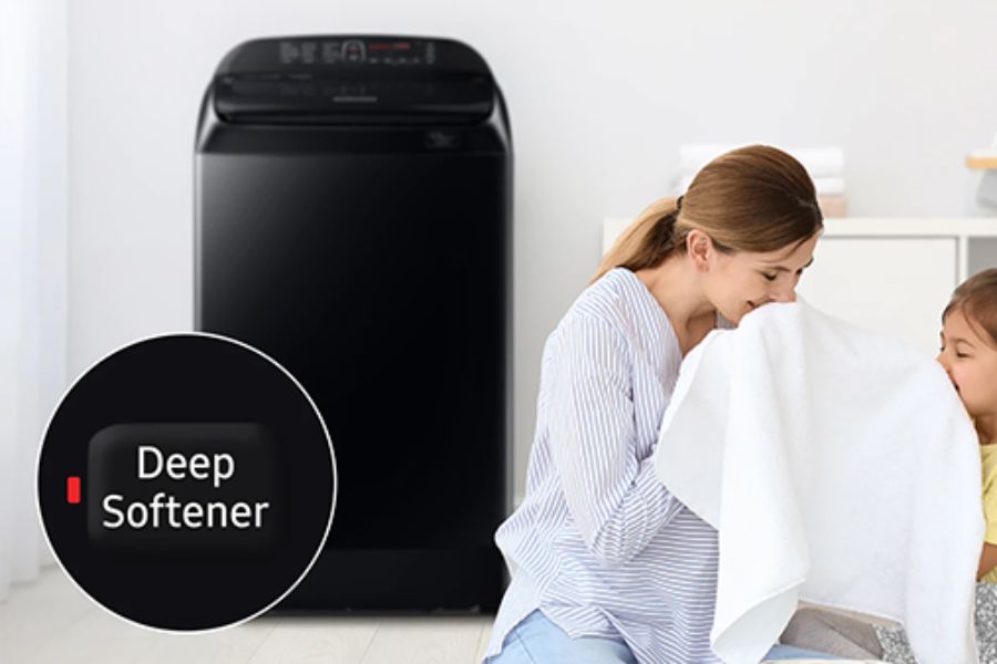 Deep Softener là công nghệ giúp giặt quần áo lưu giữ hương thơm lâu dài hơn. Đặc biệt, máy giặt tích hợp chức năng này còn giúp làm mềm vải hơn 60% so với việc giặt thông thường. Khi sử dụng chế độ này, quần áo sẽ được ngâm trong nước xả trong khoảng thời gian từ 16 đến 24 phút.