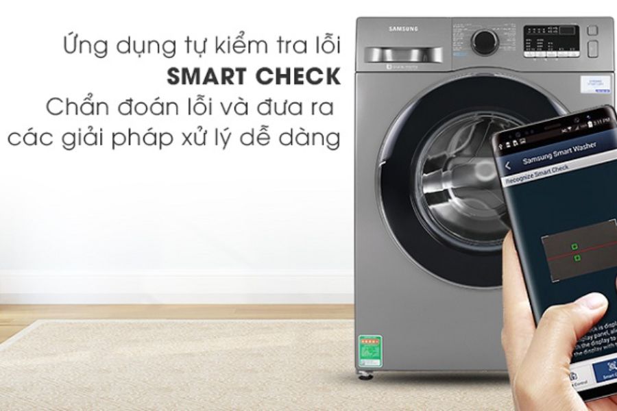 Máy giặt Samsung đã tích hợp chức năng test lỗi bằng Smart Check (Kiểm tra Thông minh) giúp người dùng có thể kiểm tra máy nhanh chóng, dễ dàng.
