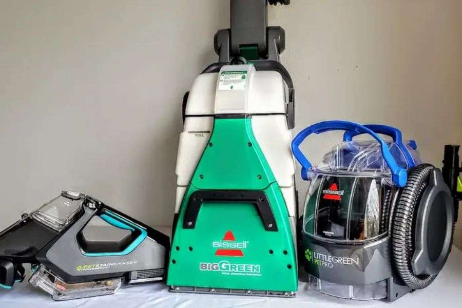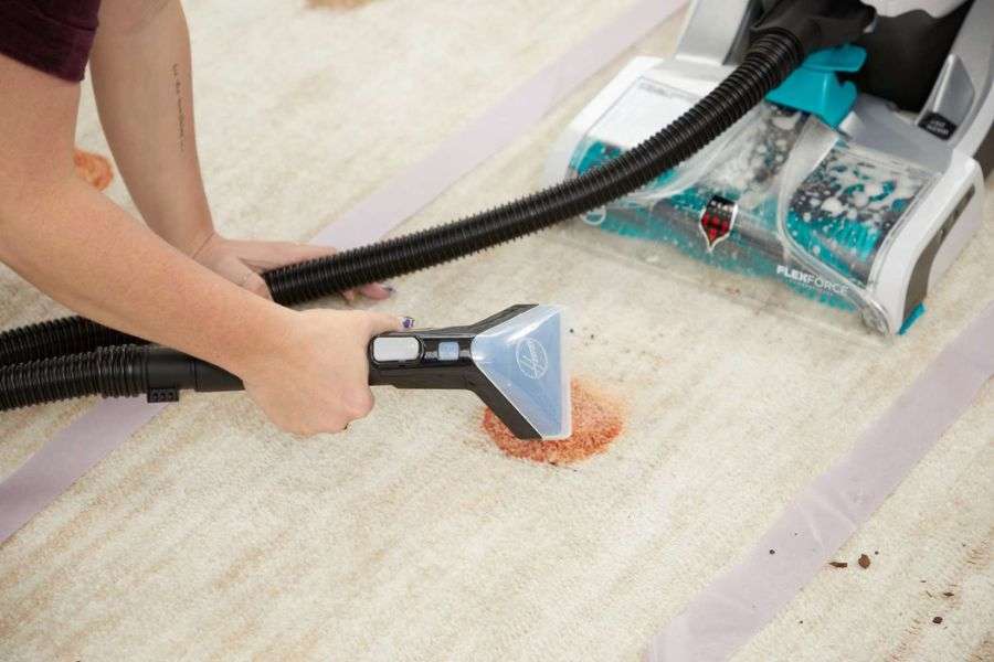 Để làm sạch máy giặt thảm, người dùng nên sử dụng một lượng nước nhỏ để rửa máy và dùng bàn chải để làm sạch các khe hút bụi và các phần khó tiếp cận khác. Cần lưu ý là không được đổ nước vào các phần điện tử của máy.
