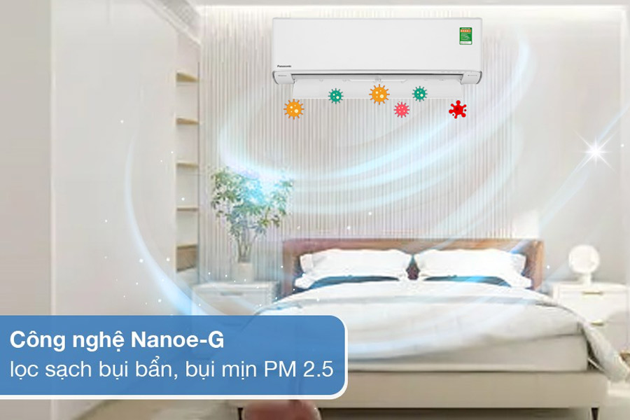 - Trang bị công nghệ Nanoe-G có khả năng lọc sạch bụi bẩn và bụi mịn PM 2.5, giúp không gian trong lành hơn.