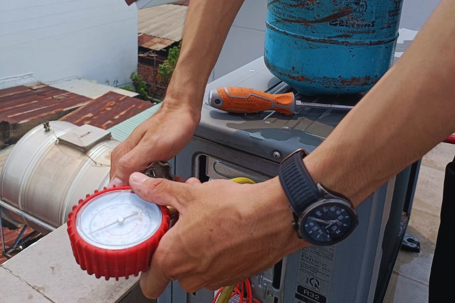 Bước kiểm tra gas tưởng chừng như khá phức tạp nhưng lại hoàn toàn có thể tự làm ở nhà. Nếu gia đình bạn có các dụng cụ như kính hiển vi, thiết bị kiểm tra mức gas,…hãy kiểm tra xem khí gas của máy lạnh có bị hao hụt hay rò rỉ hay không.