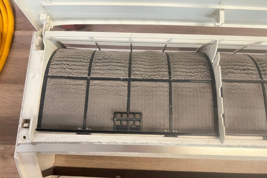 Máy lạnh hoạt động sau 1 thời gian, bụi bẩn sẽ bám vào khắp bề mặt của bộ phận như màng lọc, cánh quạt,… Nhiệt lượng tỏa ra khi điều hòa chạy bị cản bởi cặn bẩn cũng là một trong những nguyên nhân dẫn đến điều hòa có mùi khét.