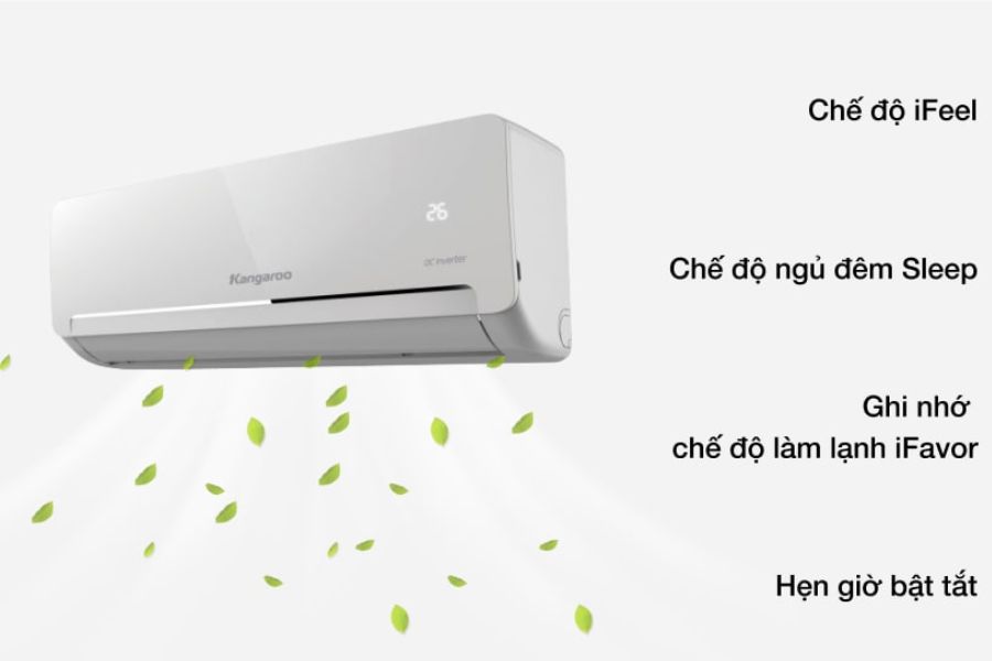 Máy lạnh inverter Kangaroo có khả năng giúp tiết kiệm điện năng tiêu thụ và giảm thiểu sự thay đổi nhiệt độ trong phòng bằng cách kiểm soát và điều hòa hoạt động của máy nén.