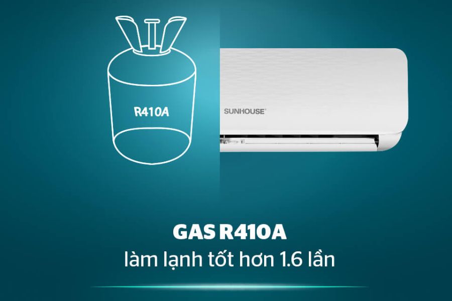 Một ưu điểm nữa được đánh giá cao là điều hòa Sunhouse sử dụng gas máy lạnh loại R410a có nhiều ưu điểm vượt trội: Làm lạnh nhanh, tiết kiệm điện, an toàn sức khỏe và bảo vệ môi trường.