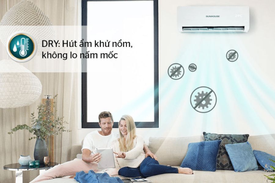 Máy lạnh Sunhouse sở hữu chức năng hút ẩm thông minh