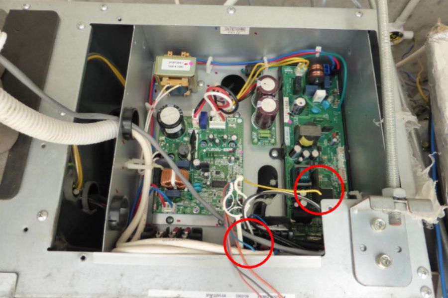 Bo mạch điều khiển nằm sâu bên trong dàn nóng, là bộ phận chứa nhiều linh kiện điện tử nên bạn tuyệt đối không tự sửa chữa tại nhà. Vì thế, cách tốt nhất là nên liên hệ trung tâm bảo dưỡng, thợ lành nghề để kiểm tra, sửa chữa và thay thế bo mạch mới.