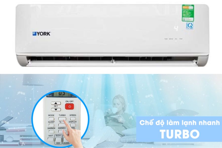 Tuy nhiên, bạn chỉ nên sử dụng chế độ này trong những ngày thời tiết quá nóng. Hoặc khi trong phòng có nhiều người, nhiệt độ trong phòng quá cao. Bởi vì, không ít người đánh giá máy lạnh York cho rằng nếu lạm dụng chế độ Turbo sẽ gây lãng phí điện năng.