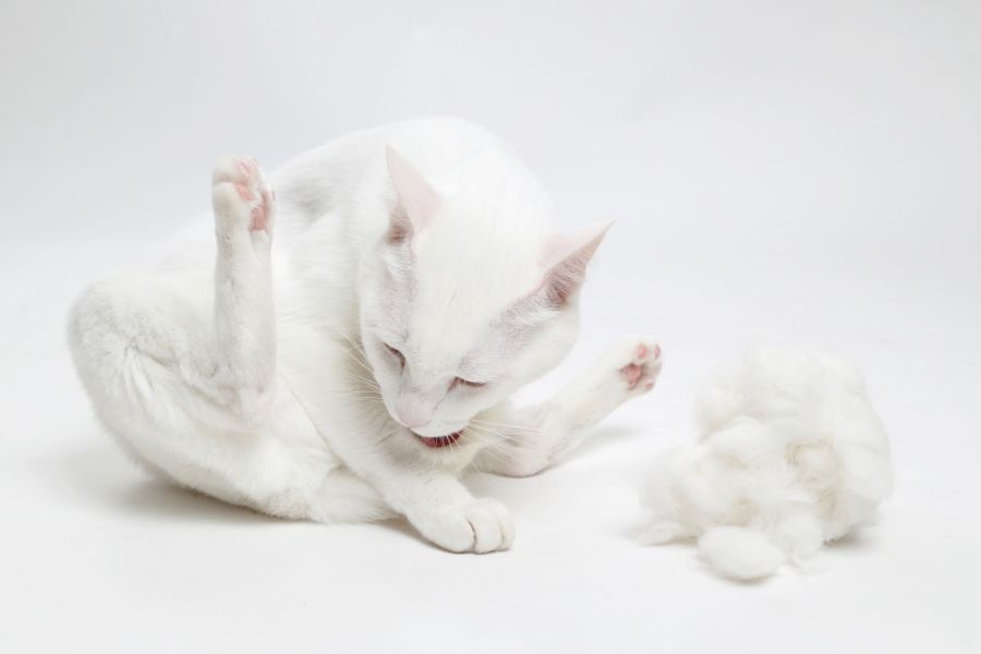 Nếu trường hợp phát hiện khi mèo nôn kèm theo các búi lông thì chủ nuôi không cần quá lo lắng. Do tập tính của mèo thường liếm lông, các sợi lông rụng như vậy theo vào trong dạ dày gây khó chịu khiến mèo có biểu hiện nôn.