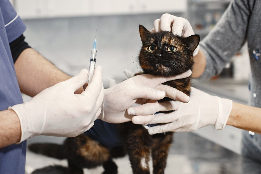 - Tiêm phòng và tẩy giun cho mèo: Điều này luôn được khuyến khích thực hiện theo định kỳ. Mèo nhà bạn sẽ giảm nguy cơ mèo mắc bệnh do virus và vi khuẩn. Việc tiêm phòng cho mèo con từ khi còn nhỏ được thực hiện để đạt được hiệu quả tốt nhất.