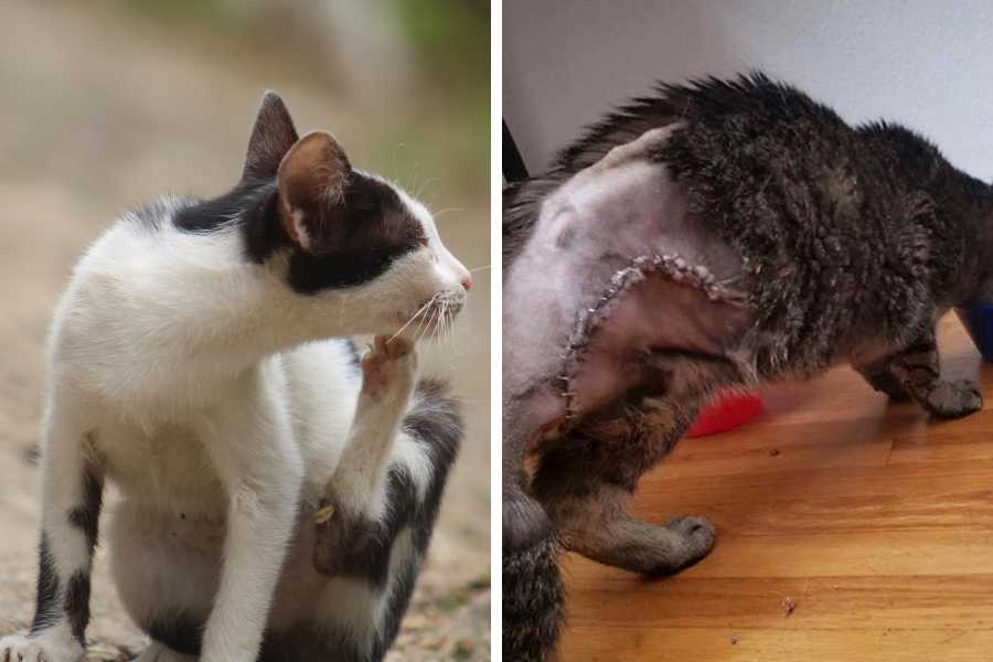 Một số loại ký sinh trùng thường gây nên bệnh này như: Bọ chét, ve, rận… dẫn đến làn da của mèo thường bị tổn thương nghiêm trọng và gây khó chịu. Khiến chúng liên tục gãi hoặc cào toàn bộ cơ thể, làm cho tình trạng bệnh trở nên nghiêm trọng hơn.