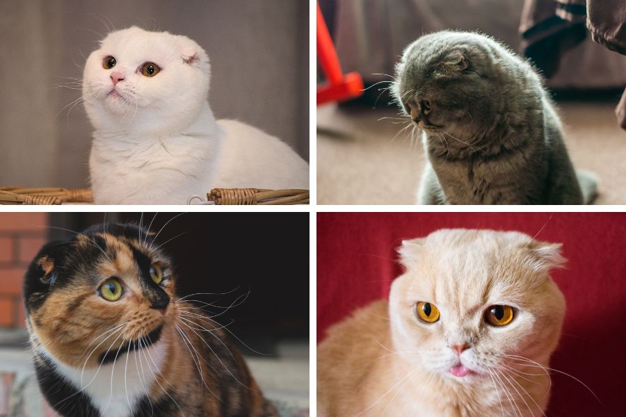 Mèo tai cụp Scottish Fold là giống mèo độc đáo với ngoại hình vô cùng đáng yêu. Chúng cũng có màu lông khá đa dạng như đen, trắng, nâu vàng, vàng kem, màu quế, màu socola, màu lilac, màu bạc, màu xám xanh, vàng đồng, đồi mồi, tam thể,…