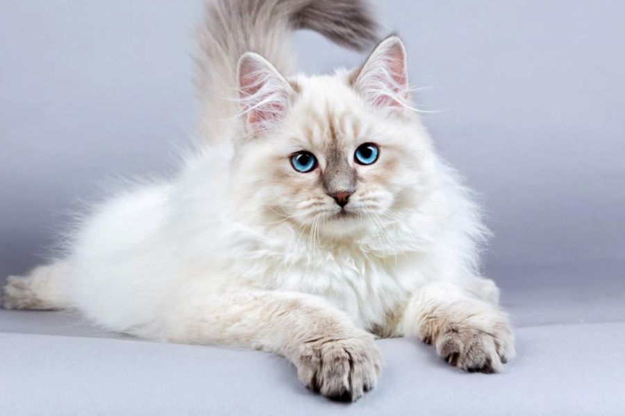 Mèo Ragdoll nổi bật bởi đôi mắt màu xanh dương trong vắt như đại dương thu nhỏ. Chúng cũng sở hữu bộ lông dài và dày. Khiến cho thân hình chúng trông rất bồng bềnh và đầy đặn. Mèo Ragdoll thường có màu socola, hoa cà, kem, xanh lam hay xám trắng.