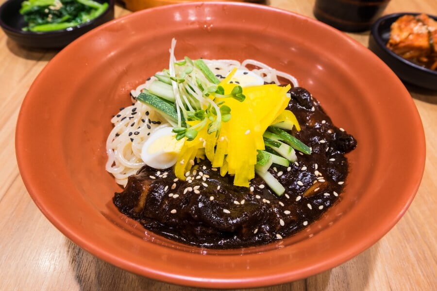 Mì tương đen (Jajangmyeon) có xuất xứ từ đất nước Hàn Quốc và nhanh chóng được du nhập đến các quốc gia khác. Món ăn này là sự kết hợp hoàn hảo giữa sợi mì tươi, thịt ba chỉ, sốt tương đen Hàn Quốc, trứng gà luộc và một số loại rau củ đẹp mắt.
