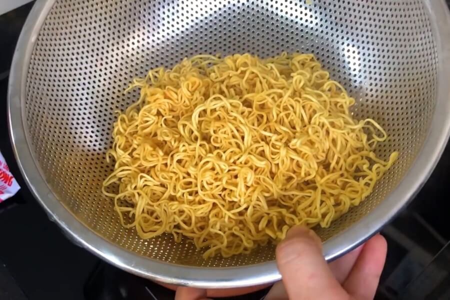 Sợi mì tôm thường chứa gia vị, dầu ăn nên để nấu mì xào ngon, không béo thì bạn cần chần sơ qua với nước sôi. Việc làm này sẽ giúp bạn loại bỏ các chất bảo quản, muối, dầu ăn bám bên ngoài sợi mì. Từ đó, sợi mì giảm bớt đáng kể lượng calo và các chất gây hại cho cơ thể.