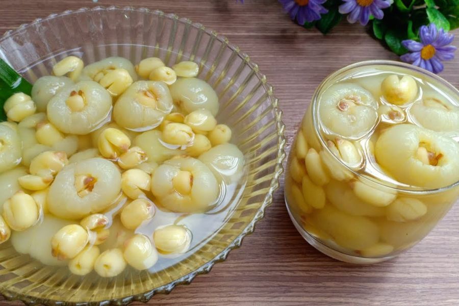 - Bước 4: Nhãn lồng đã tách vỏ, bỏ hạt bạn nhồi hạt sen vào trong từng quả. Sau đó, cho nhãn lồng đã nhồi hạt sen vào nồi chè, chè sôi bạn tắt bếp và thưởng thức.