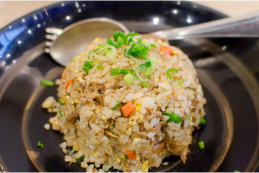 - Bước 4: Tơi nhuyễn cơm, sau đó cho vào đảo với các nguyên liệu trước đó. Trộn đều tay đến khi cơm bông tơi và tách hạt là có thể cho bé thưởng thức.