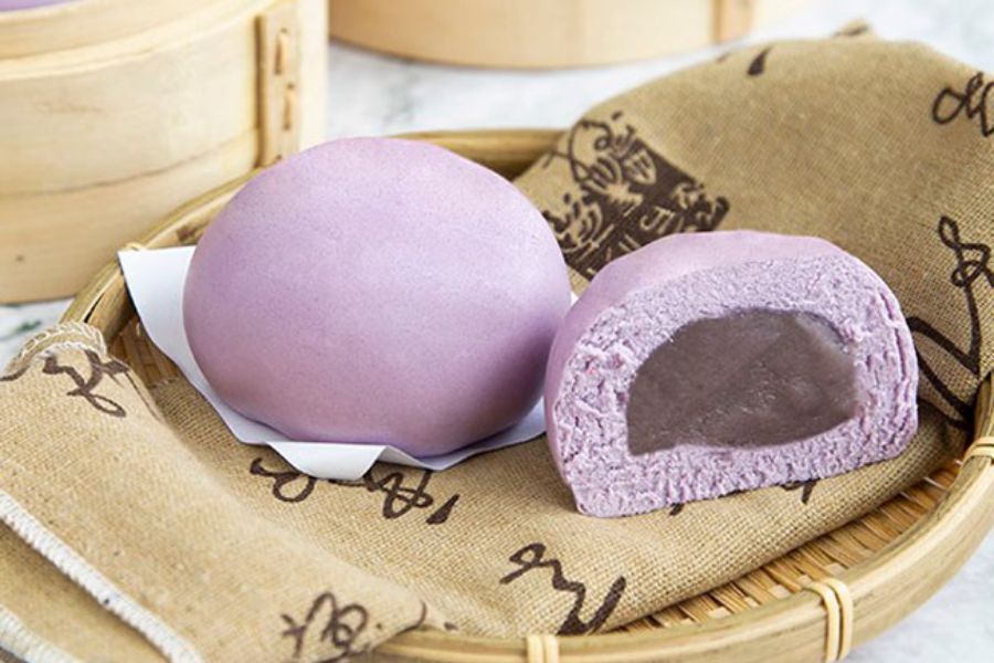 Bánh bao mềm ẩm, có mùi hương thơm đặc trưng từ bột gạo kết hợp cùng các nguyên liệu khác như khoai môn, trà xanh,…