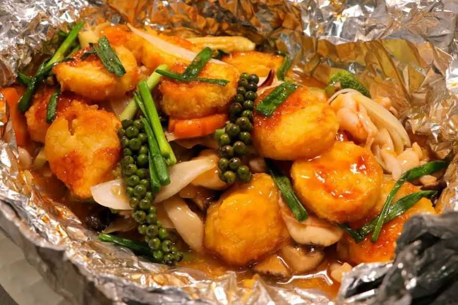 Đậu hũ chắc chắn là nguyên liệu không thể thiếu trong list những món chay đãi tiệc. Giá trị dinh dưỡng và tính ứng dụng của đậu hũ rất cao. Chuẩn bị những gia vị đi kèm cùng bơ rồi bọc giấy bạc đem đi nướng. Hương vị của món ăn này sẽ tỏa ra thơm lừng cả 1 góc không gian.