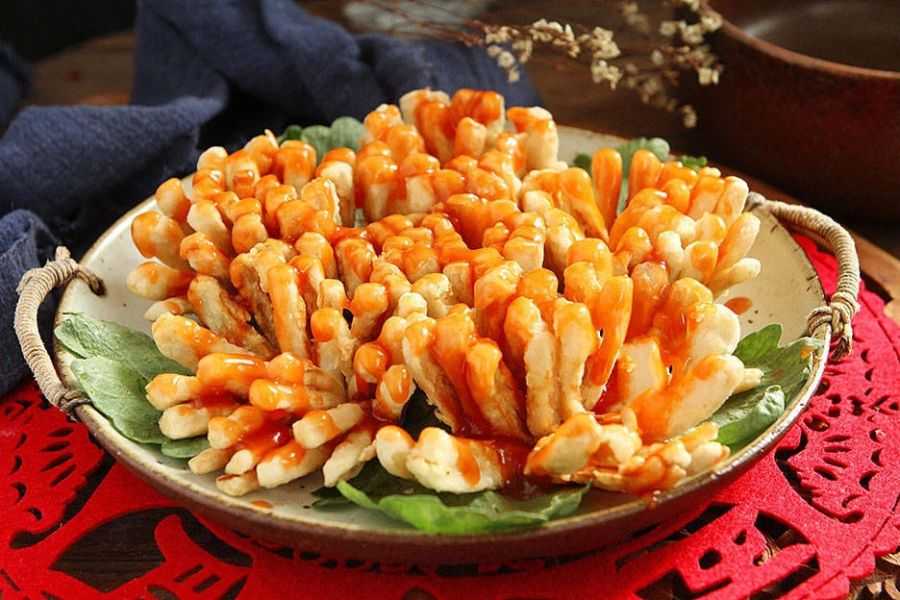 Với vị dai giòn đặc trưng, nấm kim sau khi được sơ chế hãy đem hấp và cuộn cùng sả. Sau đó bọc 1 lớp vỏ bánh tráng ở ngoài để định hình giống chiếc đùi gà. Nhúng qua bột và đem chiên giòn. Thành phẩm thu được là 1 đĩa đùi gà nấm chay bắt mắt và thơm ngon hết sẩy.