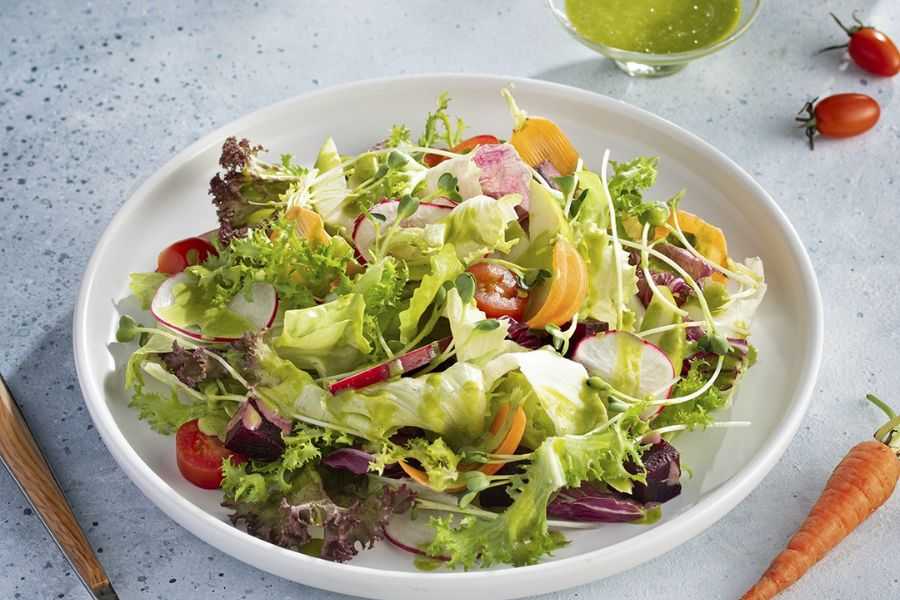 Salad chay thanh mát dễ ăn mà còn chứa một lượng chất xơ dồi dào. Với món này bạn không hề tốn quá nhiều thời gian để chuẩn bị. Hương vị hấp dẫn mà màu sắc cũng rất bắt mắt.