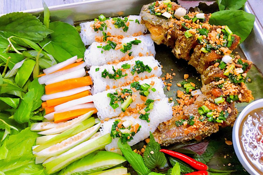 Món ăn này có thể sử dụng các loại cá như cá nục hấp cuốn bánh tráng, cá điêu hồng, cá nóc,… đều có vị ngọt tự nhiên và vô cùng béo ngậy.