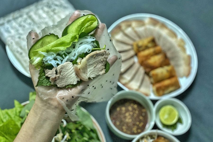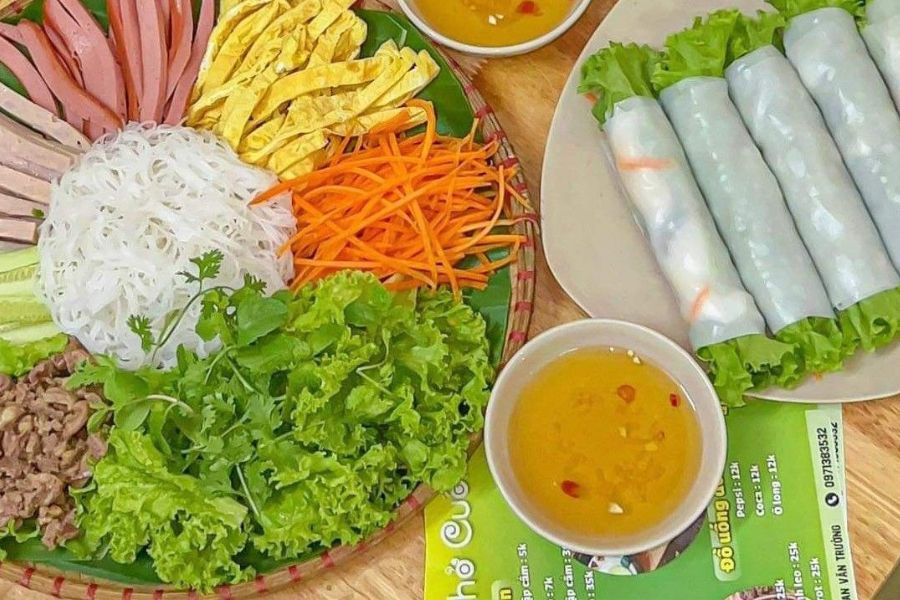 Chiếc bánh phở tráng cuộn tròn các nguyên liệu bên trong như thịt bò, trứng, giò chả, dưa leo, rau thơm,… Khi đó, bạn sẽ cảm nhận được trọn vị thơm ngon, hấp dẫn. Tuy đơn giản nhưng thể hiện ý nghĩa đủ đầy, vẹn nguyên, hòa quyện với nhau.