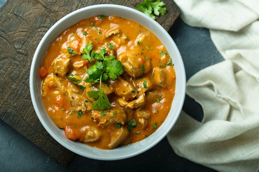 Nói đến những món ngon đãi khách thì không thể thiếu cà ri thịt gà. Món cà ri thịt gà có vị cay, thơm ngon của bột cà ri, mùi thơm của nước cốt dừa và các loại rau thơm.