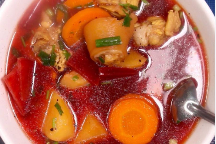Canh giò heo hầm củ dền vừa thanh mát vừa bổ dưỡng cho mâm cơm của gia đình để đãi khách.