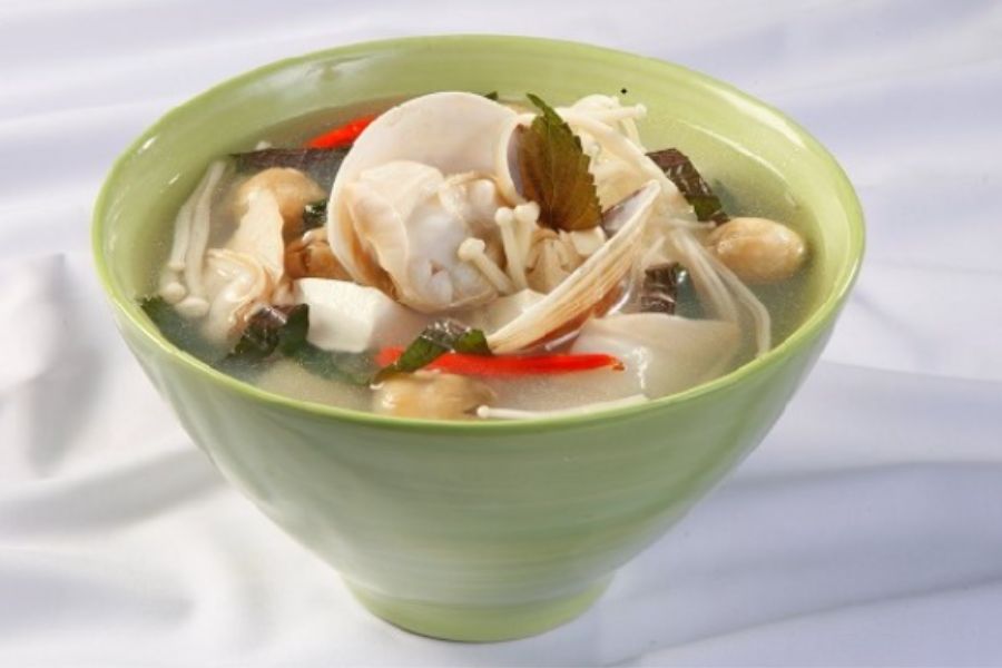Ngao kết hợp với nấm sẽ đem lại cho bạn một tô canh thơm ngon, thanh mát, đậm đà hương vị cho ngày hè nóng bức. Món này gồm có ngao tươi, nấm kim châm, rong biển khô, cà chua, me chua và một số loại gia vị.