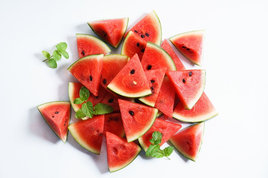 Tráng miệng với một dĩa dưa hấu tươi mát. Dưa hấu giúp bổ sung nhiều vitamin, cung cấp nước cho cơ thể. Bạn có thể thái miếng hoặc xay làm sinh tố để uống.