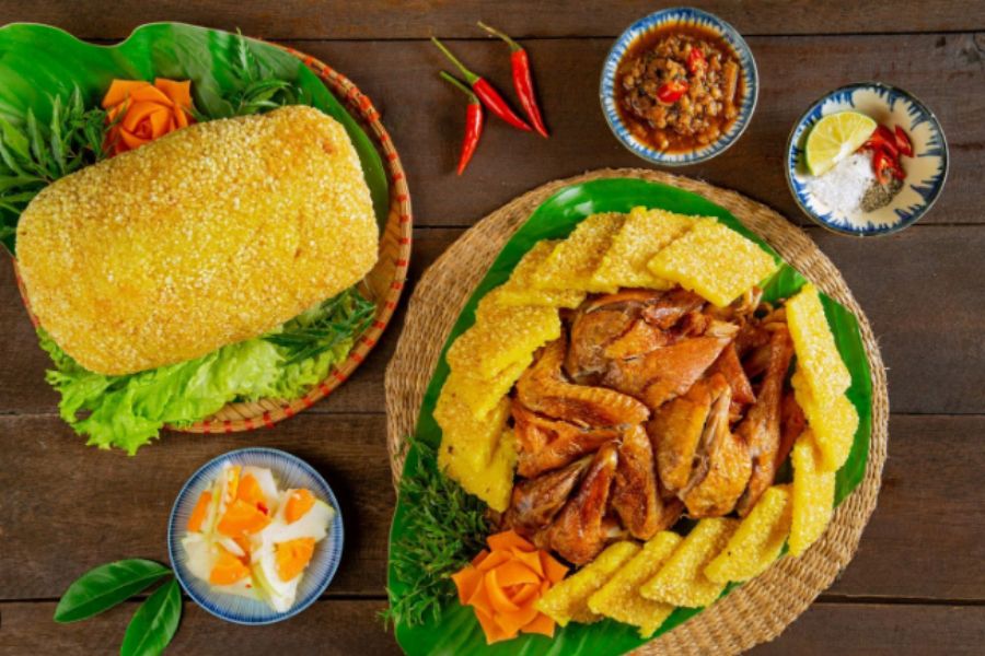 Gà bó xôi là một món ngon không thể thiếu khi đãi khách. Món ăn này bao gồm gà quay hoặc gà luộc được bó vào xôi nếp; sau đó được đem chiên lên ở lửa lớn.