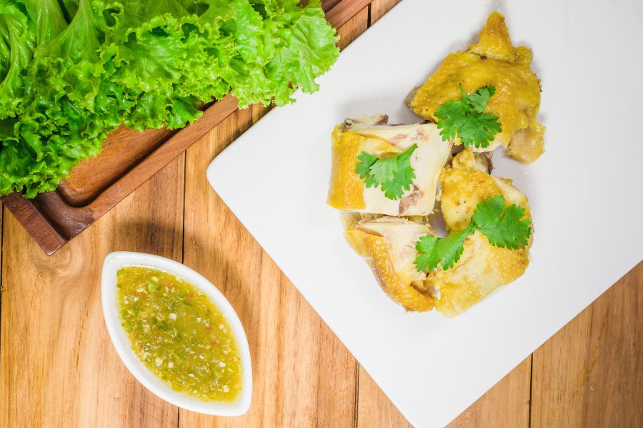 Thịt gà luộc chấm muối tiêu
