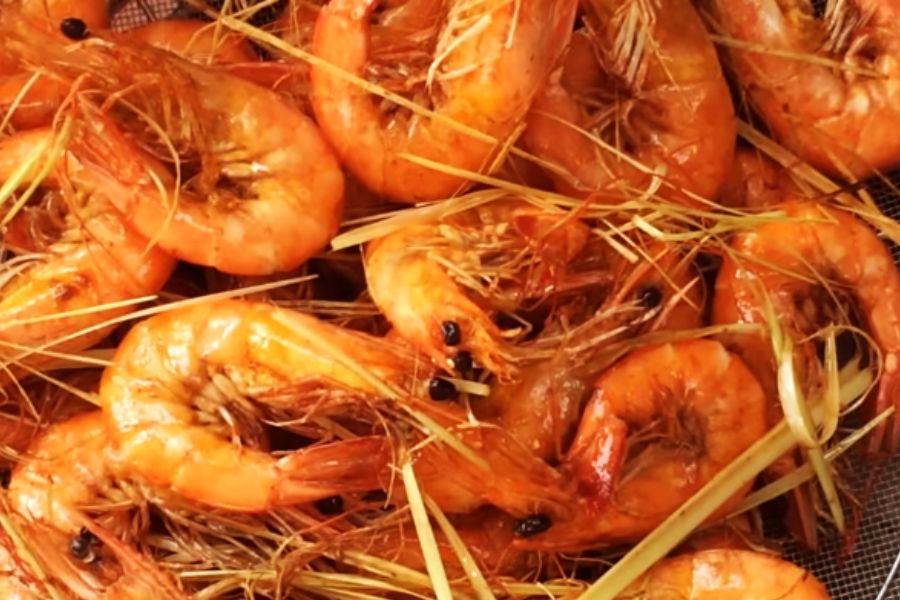 Món ăn tiếp theo trong mâm cơm đãi khách là tôm chiên sả. Những con tôm được chiên giòn cùng với sả tạo nên một mùi thơm khó cưỡng.