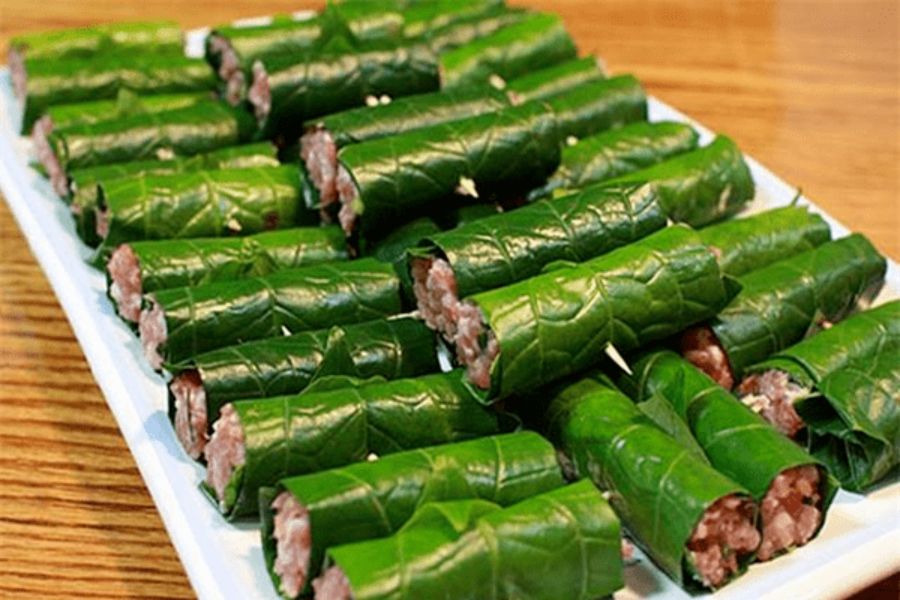 Thịt băm nhuyễn kết hợp cùng nấm hương và các gia vị theo ý thích cuộn trong lá lốt thơm ngon. Chả lá lốt nướng lên sẽ có mùi thơm cực kỳ cuốn hút.