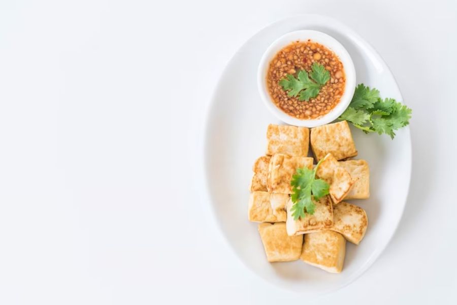 Món đậu phụ rán với vỏ ngoài vàng ruộm, bên trong béo mềm chấm cùng mắm tôm sẽ khiến bạn rất dễ “nghiện”.