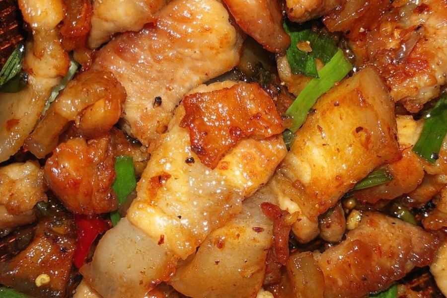 Bên cạnh các món canh rau thanh đạm thì đĩa thịt rang cháy cạnh sẽ giúp bữa cơm của gia đình thêm đậm đà.