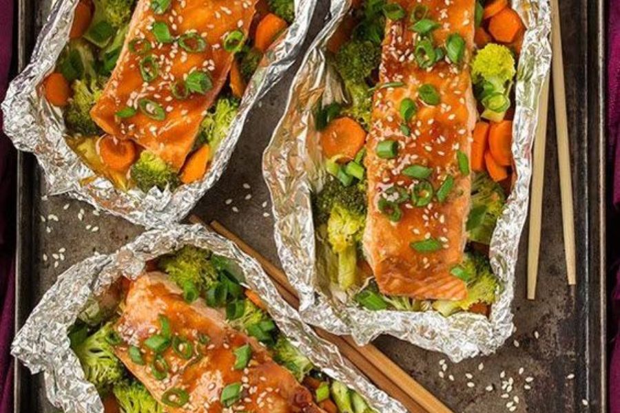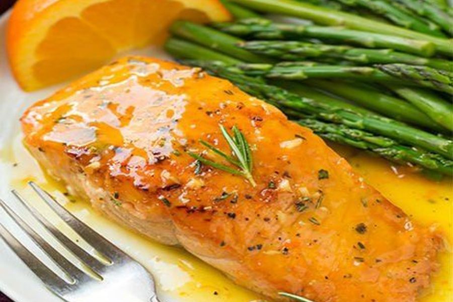 Cá hồi nướng chứa nhiều chất dinh dưỡng như protein, axit béo Omega-3 và vitamin D. Vị cá hồi mềm ngọt, béo béo quyện với sốt bơ chanh chua chua, ngọt ngọt khó có thể cưỡng lại được.