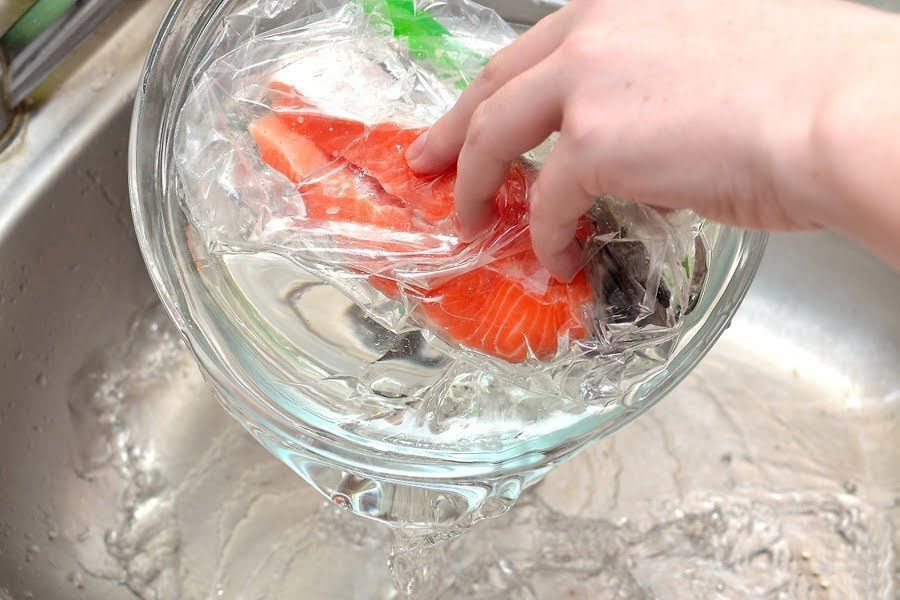 - Có thể rã đông cá hồi nhanh chóng và an toàn bằng nước muối.