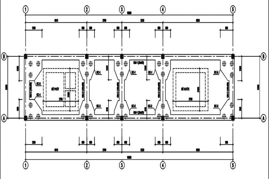 - Dầm móng theo phổ thông: 300 x (500 – 700)mm