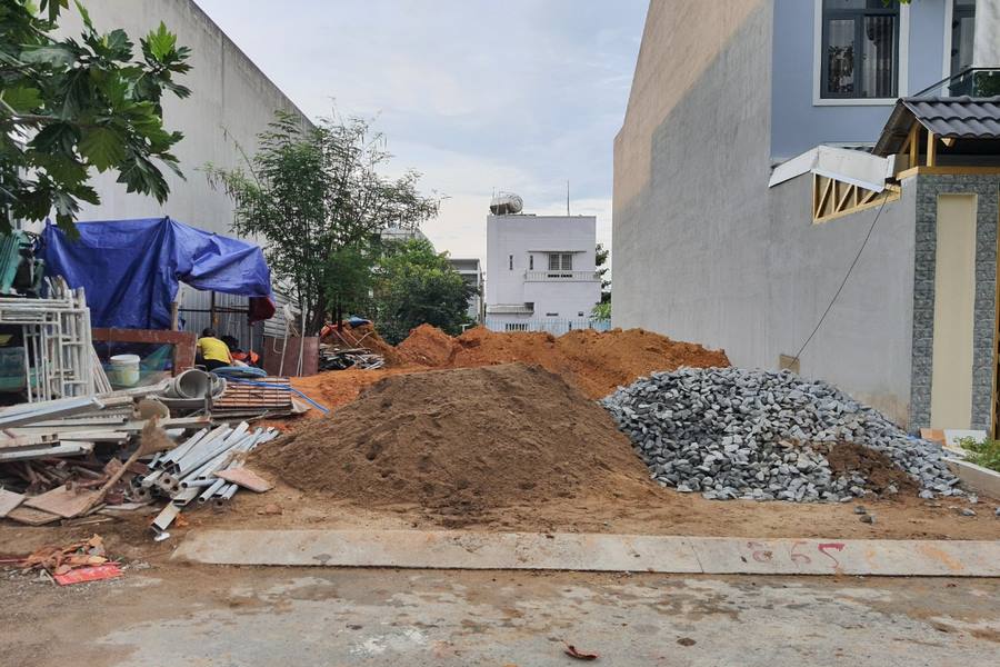 Bước 1: Chuẩn bị các nguyên vật liệu là công tác đầu tiên của mọi công trình. Giải phóng bề mặt xây dựng gọn gàng sẽ cho bạn biết được vị trí cần đóng cọc cũng như tạo móng băng. Số lượng xi măng, thép cần được tính toán cẩn thận theo thiết kế và khối lượng vật tư thi công.