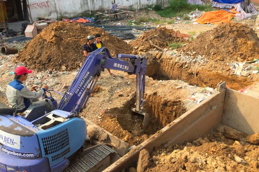 Công đoạn đào hố là phần rất quan trọng, nó ảnh hưởng đến cả quá trình hoàn thiện công trình sau này.
