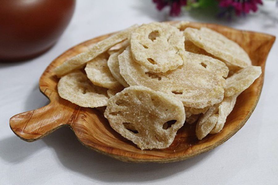 Mứt củ sen ngoài hương vị giòn giòn, lạ miệng thì còn có công dụng an thần, điều hòa giấc ngủ nên rất phù hợp cho những ai bị chứng mất ngủ.