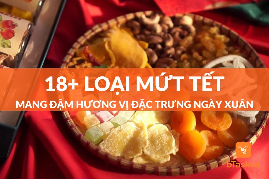 Cùng với các loại hạt và kẹo thì mứt Tết là món ăn vặt không thể thiếu cho những ngày xuân. Vậy bạn đã tìm được món mứt phù hợp với khẩu vị của gia đình chưa? Nếu chưa thì hãy cùng bTaskee điểm danh qua 18+ loại mức Tết đậm đà hương vị đặc trưng nhé!
