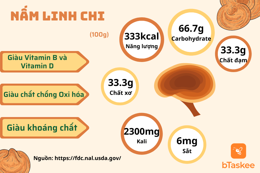 Theo USDA, trung bình trong 100g nấm linh chi chứa: