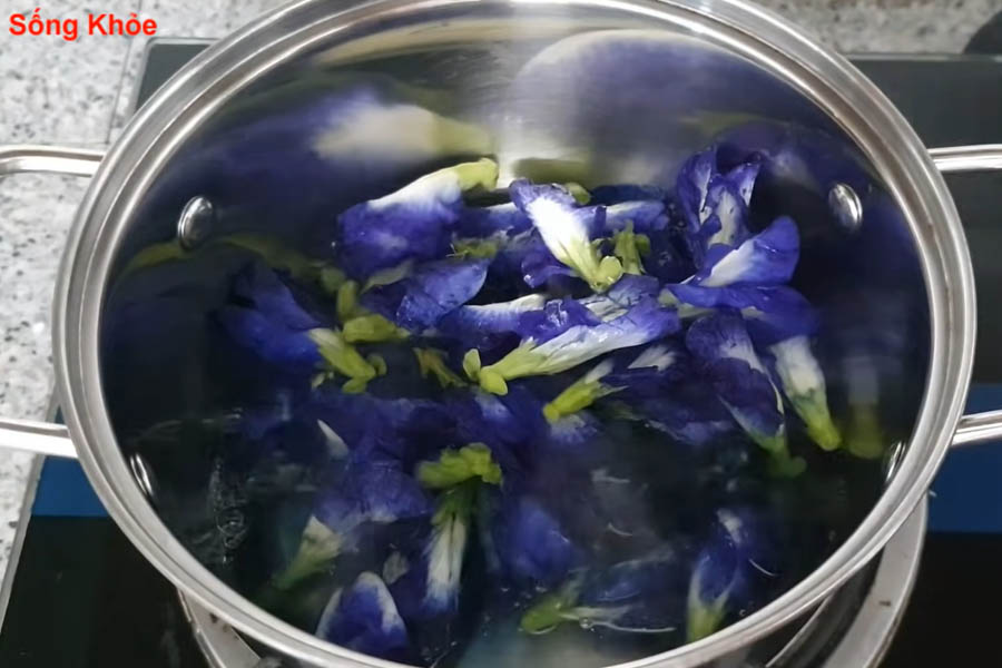 - Cho hoa đậu biếc vào luộc với nước để lấy nước màu.