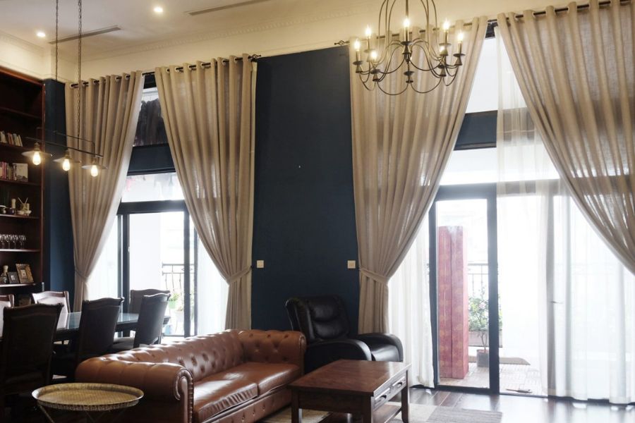 Nên chọn rèm cửa có chất liệu gấm, có hoa văn nổi và trang trí thêm bèo nhún đẹp mắt. Điều này sẽ giúp không gian căn phòng trở nên sang trọng và đẳng cấp hơn.
