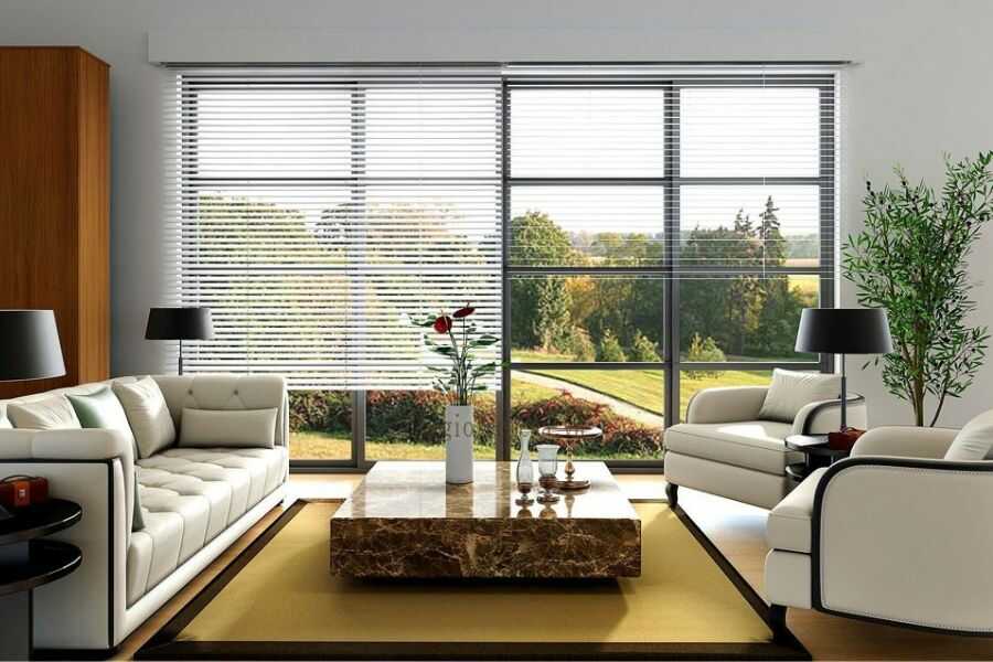 Không gian phòng bếp, văn phòng cửa kính phòng tắm thường sử dụng rèm sáo nhôm để dễ lau chùi, vệ sinh và không thấm nước vì làm bằng chất liệu kim loại.
